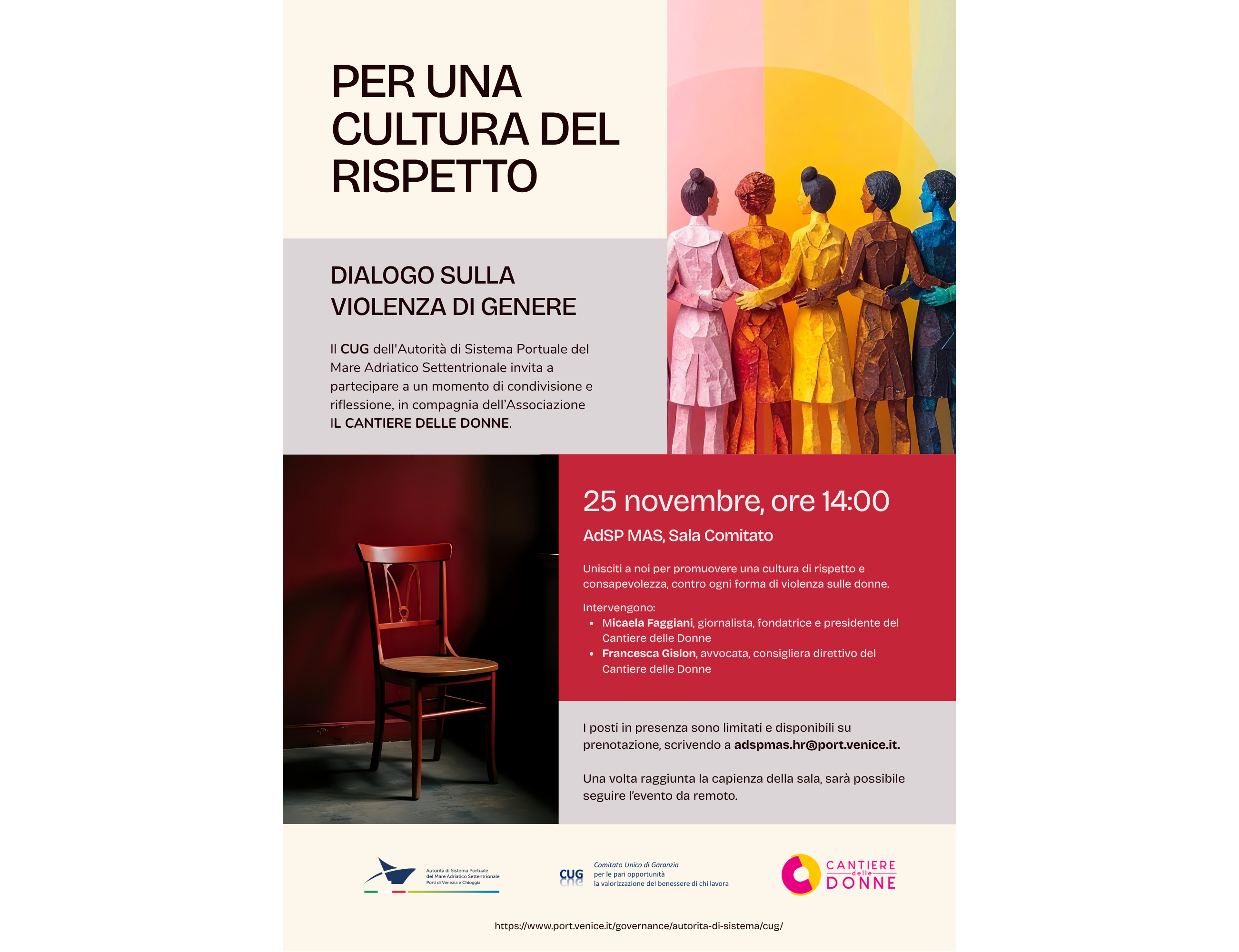News ed Eventi Giornata internazionale per l’eliminazione della violenza contro le donne: il Comitato Unico di Garanzia di AdSPMAS promuove un momento di confronto sulla cultura del rispetto Venezia Leggi di più » 24 Novembre 2025